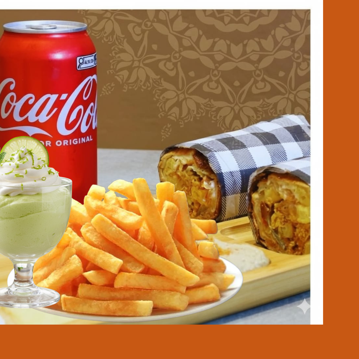 Pão sírio recheado com uma explosão de sabores: pasta de alho, tomate e cebola refogada, crocante salada de repolho com maionese, picles, batatas fritas douradas e 150g suculentos cubos de filé de frango, meticulosamente temperados com uma mistura especial de 14 especiarias. E então cuidadosamente grelhado na chapa com zaatar e azeite, garantindo um toque final de sabor irresistível.